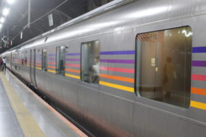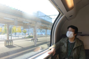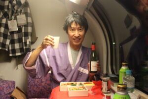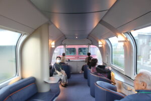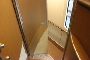 反時計回りに登ると2 階キャビンのドアへと続きます。